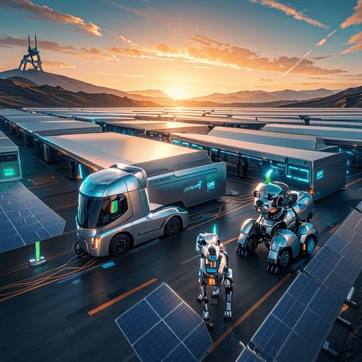 响应国家“新质生产力”发展战略与“双碳”目标,机械星球进一步布局新能源领域。依托“购车、建站、整备、运营”四大核心能力,平台为电动重卡物流场景提供金融、保险、数字化运营等一站式服务。同时,创新性地推出了“光储充运”一体化解决方案,通过“源-网-荷-储”的全链路协同,将光伏发电、智慧储能与高效充电桩(30分钟可为重卡补能60%)相结合,最大限度提升新能源利用效率,助力物流行业迈向零碳未来。